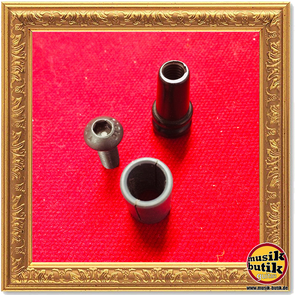 Der Knopf wird in das bestehende Loch gesetzt, die Inbusschraube von innen angezogen.