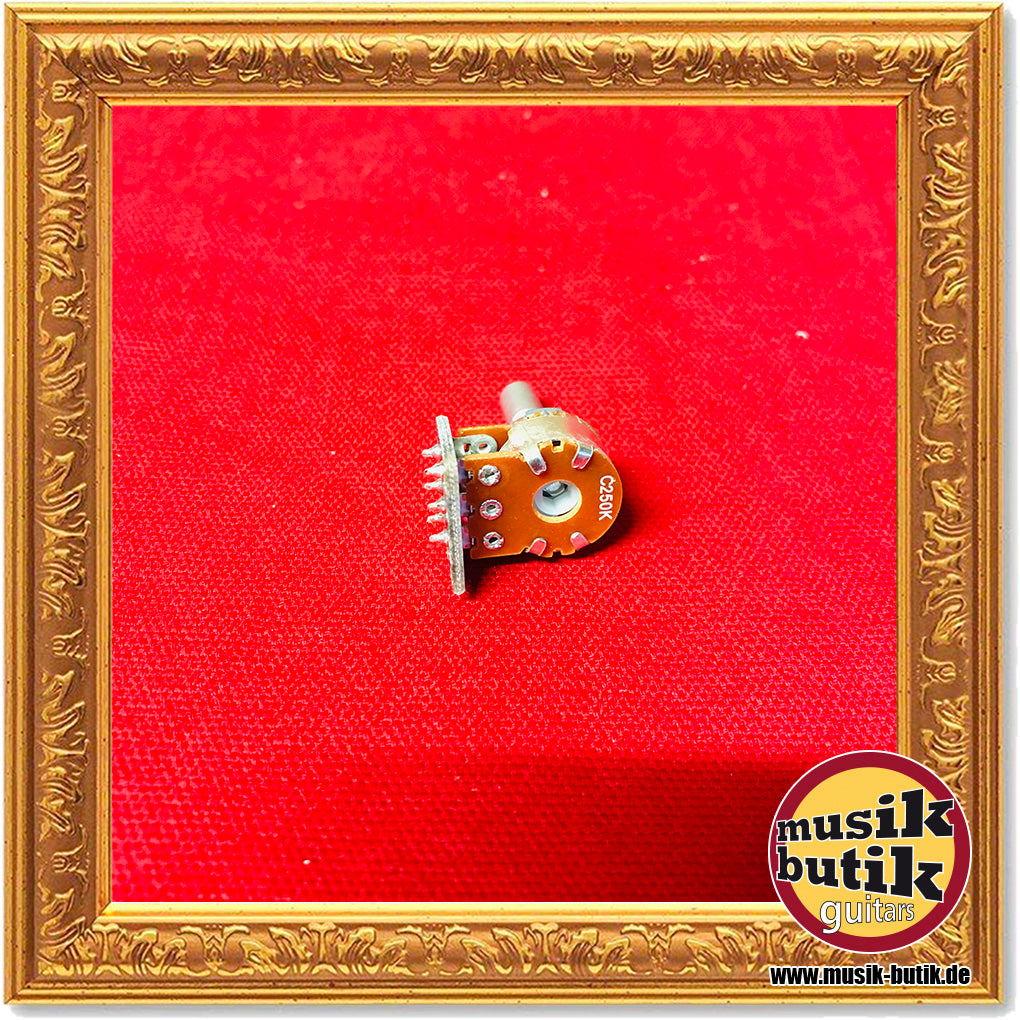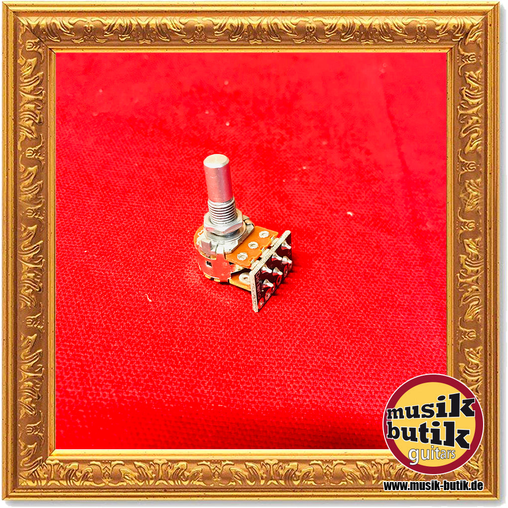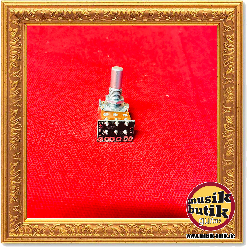 Panorama-Doppel-Potentiometer mit Mittelrasterung - z.B. zum Überblenden von zwei Pickup-Signalen. Im Gegensatz zu vielen anderen Überblend-Potis werden hier in der Mittelstellung beide Signale zu 100% ohne jegliche Klang- und Lautstärkenverluste übertragen. Die kleine Bauform des Poti ermöglicht den Einbau in viele Modelle ohne zusätzliche Holzarbeiten. Die Lötkontakte befinden sich auf einer aufgesetzten Platine, die sich bei Bedarf aber auch entfernen lässt. Kommt inkl. Mutter und Unterlegscheibe.