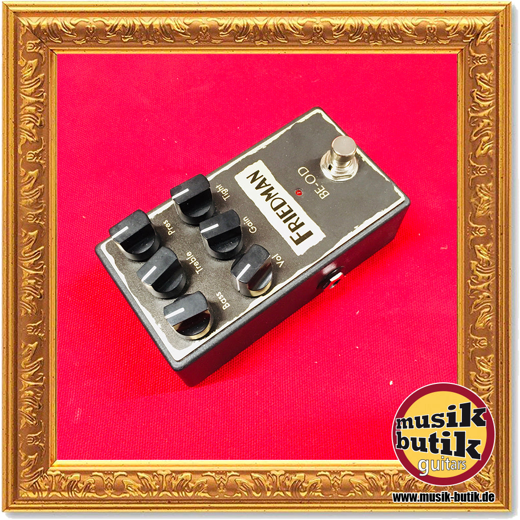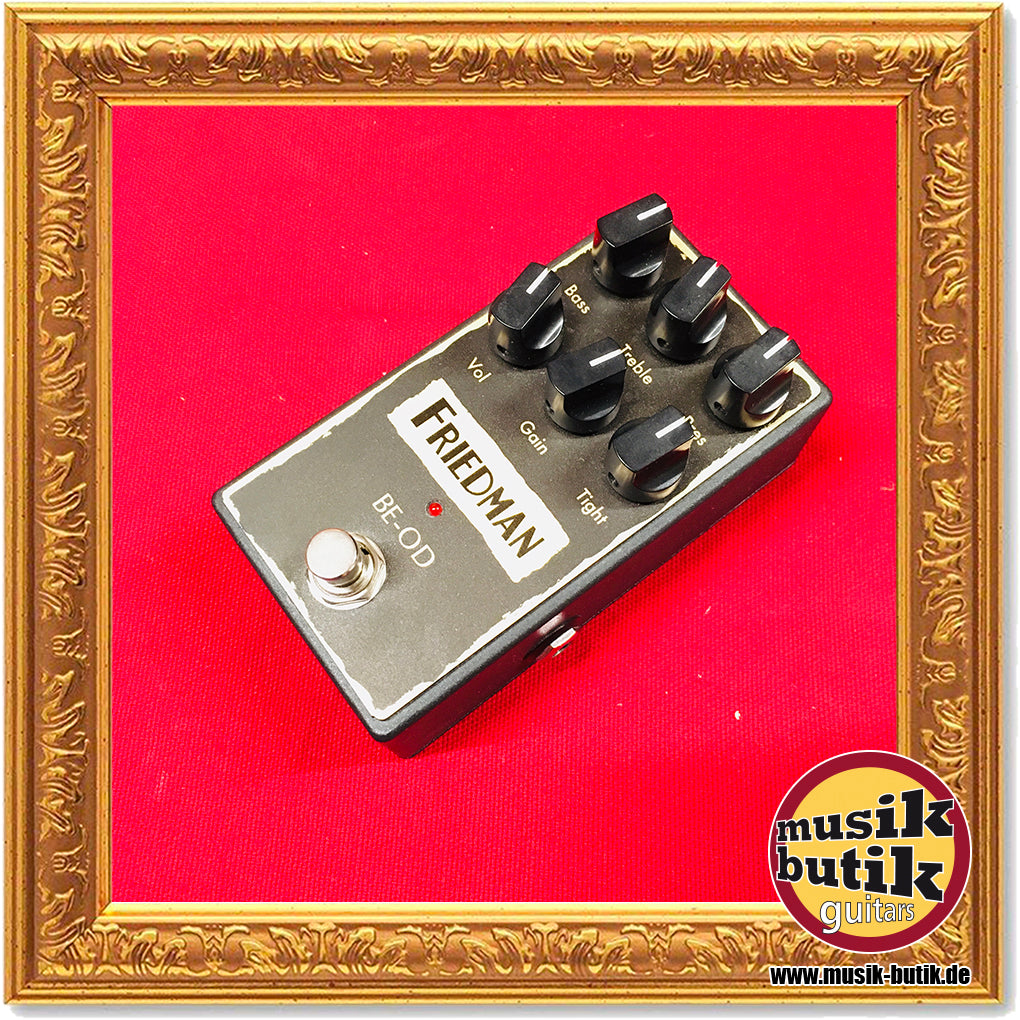 Mit dem Friedman BE-OD Overdrive verpackt Dave Friedman den Sound seines legendären BE-100 Vollröhren-Topteils in ein kompaktes Effektpedal, das den Gitarristen ins selige Gain-Nirvana befördert. Dementsprechend überzeugt das Pedal mit einem satt britischen Sound, der sich mithilfe des Gain-Reglers vom saftigen Crunch bis hin zum High Gain Brown Sound. Hierbei stehen mit den Reglern für Bass, Treble, Presence und Tight umfangreiche Möglichkeiten zur präzisen Anpassung des Klangbildes bereit. Regelbar in Gain, Volume, Tight, Bass, Treble und Presence. Gebrauchtgerät in neuwertigem Zustand im Kundenauftrag zu verkaufen.