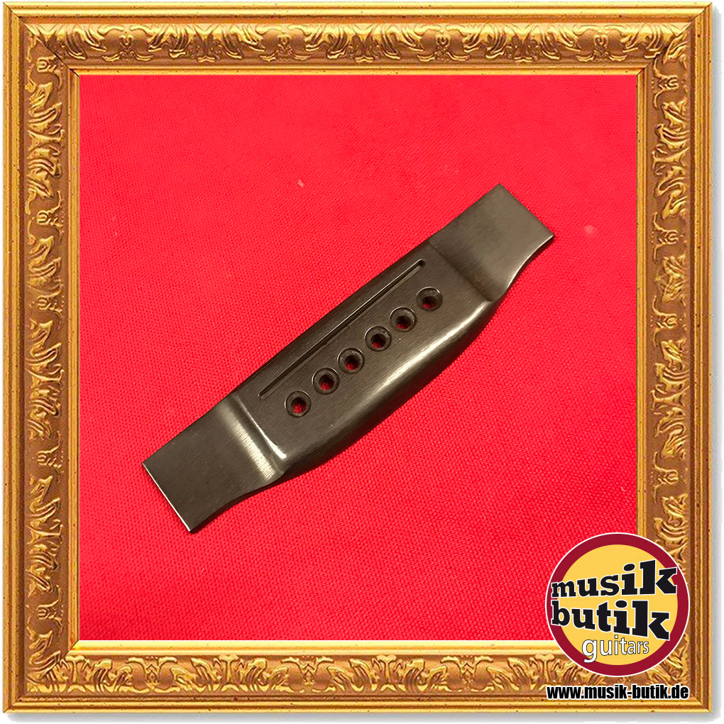 Für göldo music aus bestem Palisander gefertigte und end-polierte Martin-style Brücke für sechssaitige Stahlsaiten-Gitarren.
