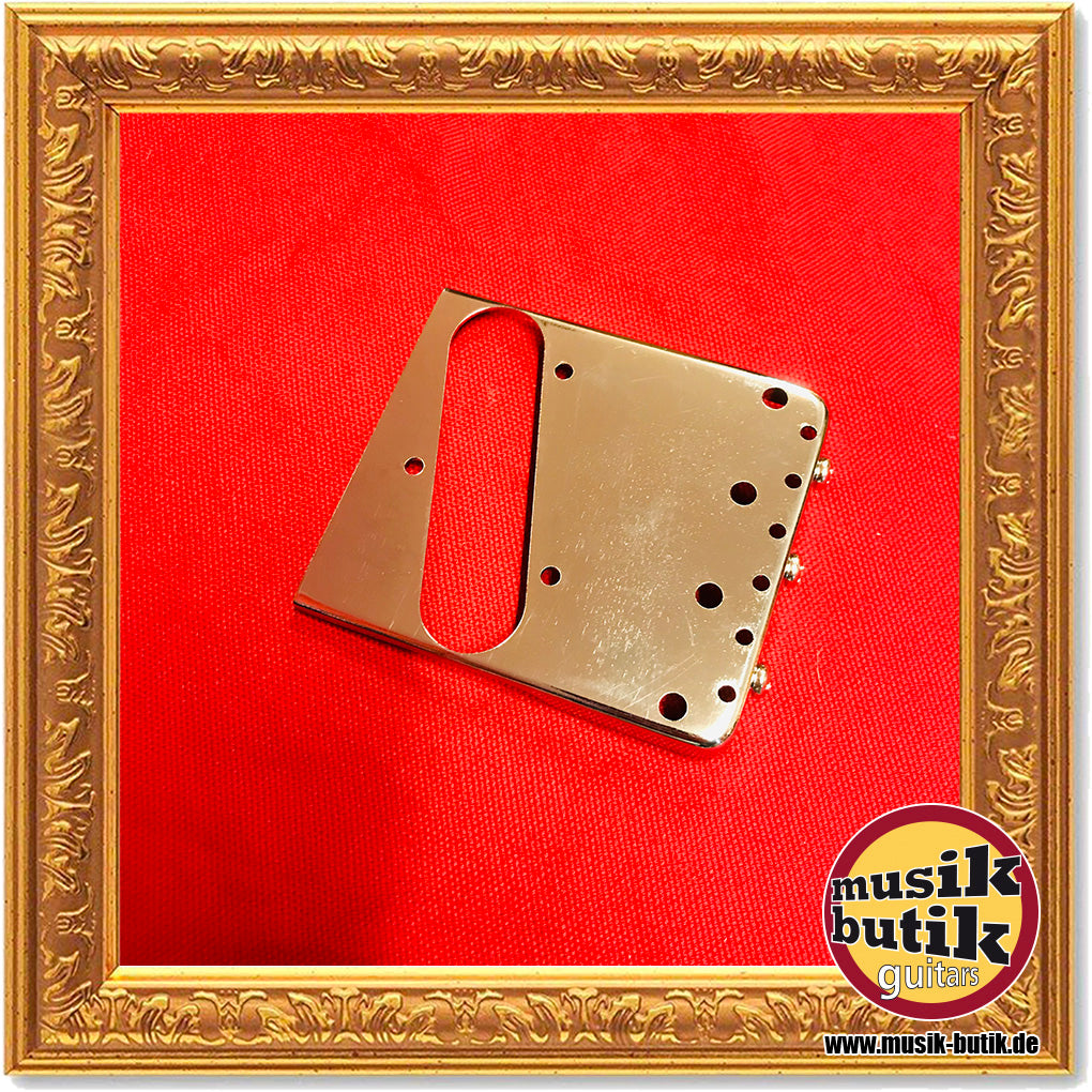 Vintage TL-Brücke mit kompensierten Messingreitern zur exakten Einstellung der Oktavreinheit. Die Reiter sind wie bei den allerersten Originalen in der Fender-Historie an der Unterseite abgeflacht, so dass sie tiefer eingestellt werden können als sonst üblich.