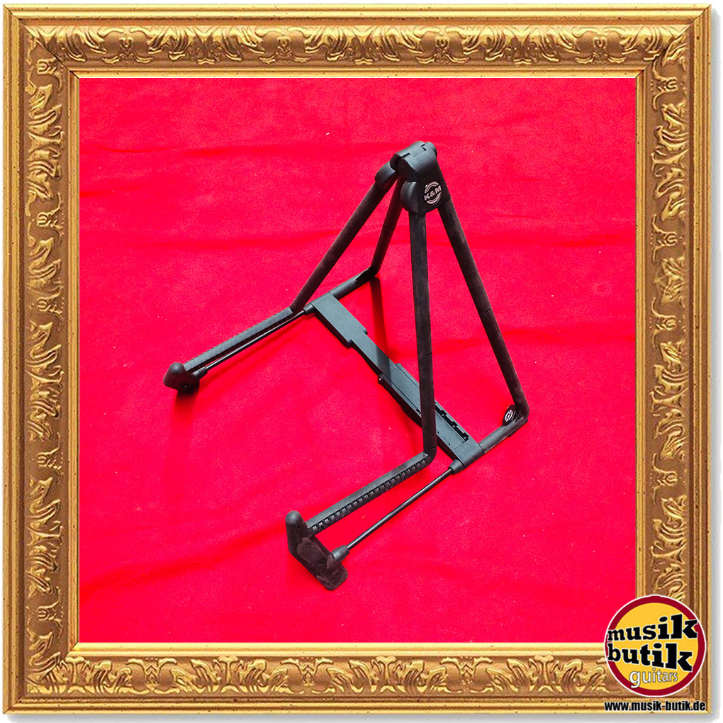Weltweit bewährter Gitarrenständer. Dank der ausgefeilten neuartigen Struktur der Gummierung wird das Instrument besonders schonend gehalten. Eine innovative verstellbare Verbindungsstrebe ermöglicht es, Gitarren in unterschiedlichen Größen oder auch andere Instrumente wie z.B. Cello oder Waldhorn platzsparend aufzunehmen. Zur Aufbewahrung oder zum Transport kann der Ständer äußerst flach und kompakt zusammengelegt werden. Zudem wurde an eine praktische Transportsicherung gedacht. Ein weiteres Feature sind die beiden integrierten Plektrenhalter.