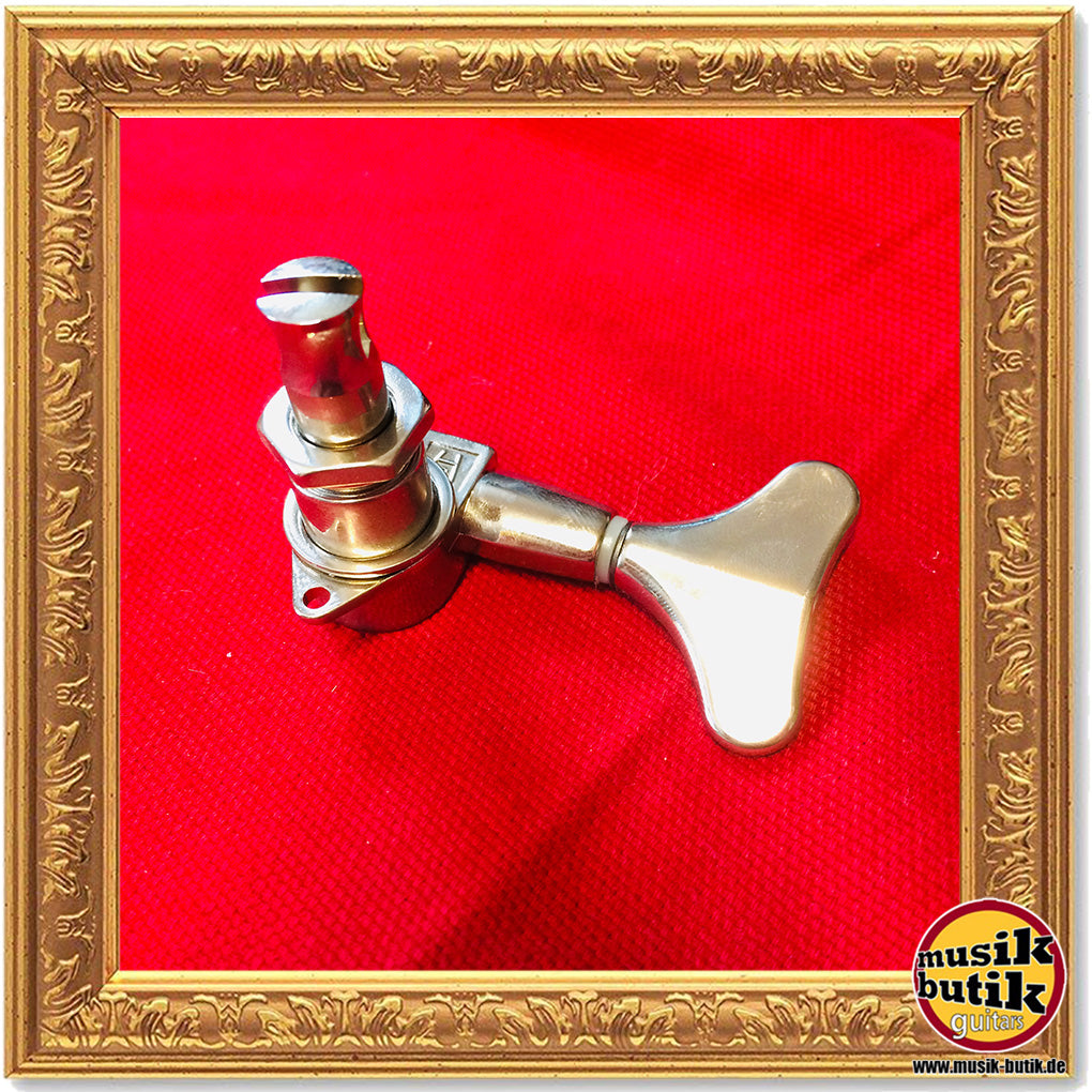 1A “closed” Bass-Mechaniken. Übersetzung 1:18, 14mm Ø Bohrung. Wegen des 4-, 5- & 6-Saiter / links & rechts Dilemmas bieten wir sie einfach einzeln (stückweise) an, so daß sie in jeder erdenklichen Kombination erhältlich sind!