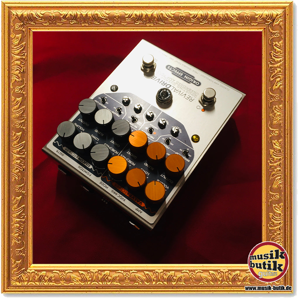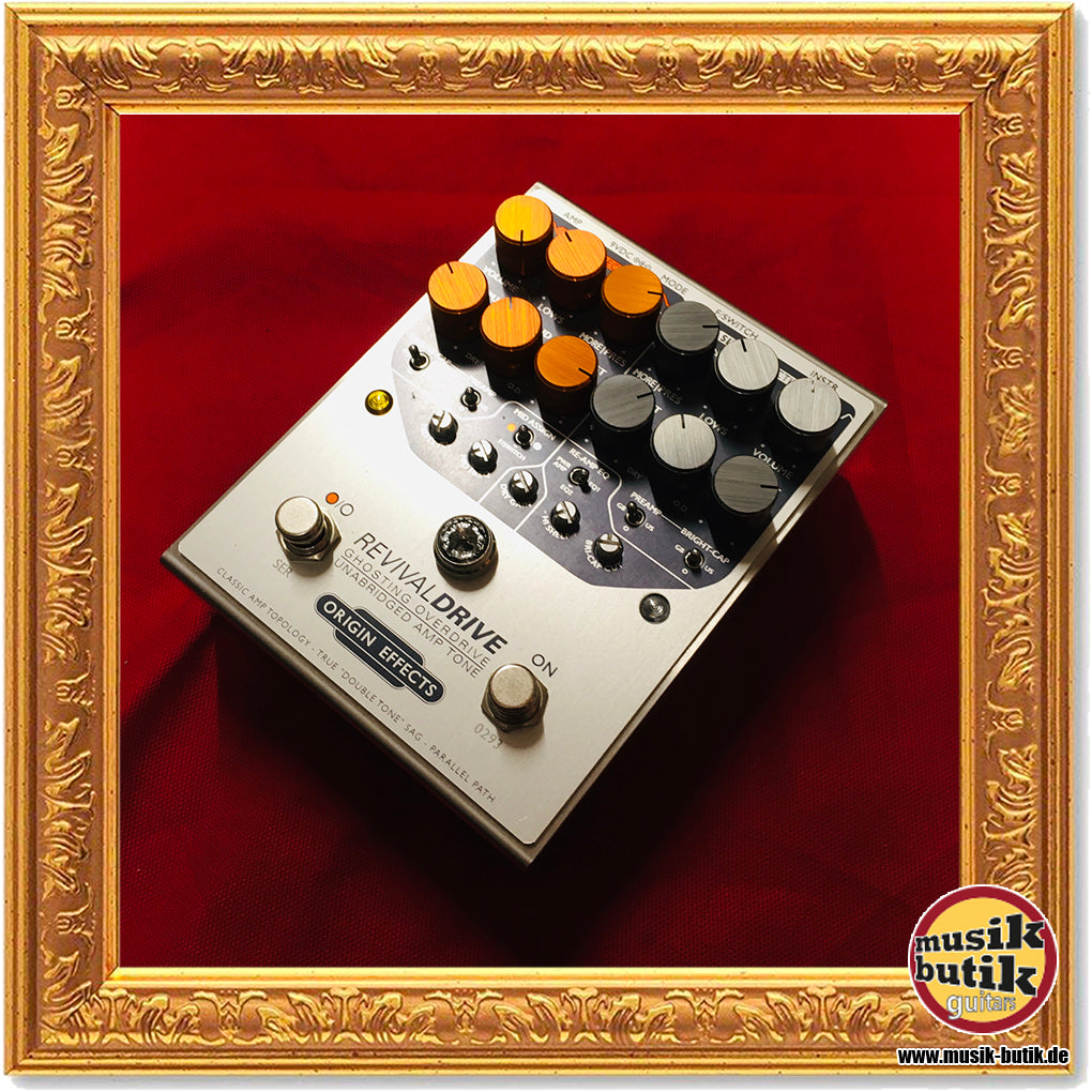 Das Origin Effects RevivalDRIVE hebt als vielseitiges Overdrive- und Preamp-Pedal das angesagte "Amp-in-a-Box"-Konzept auf die nächste Stufe und überzeugt mit absolut authentischen Klangnachbildungen der besten Vintage-Röhrenverstärker. Hierbei verfügt die aufwändige Analogschaltung über authentische Nachbauten der klangbestimmenden Komponenten eines Gitarrenverstärkers, sodass Spielgefühl und Klangempfinden nicht von einem ausgewachsenen Amp zu unterscheiden sind. Mit den "Silicon Rectifier"- und "Valve Rectifier"-Kanälen bietet das Origin Effects RevivalDRIVE zwei separate Klangebenen mit den authentischen Eigenschaften von Amps mit Röhren- oder Dioden-Gleichrichtung. Jeder Kanal verfügt über umfangreiche Möglichkeiten zur Klanganpassung, außerdem stehen ein semi-parametrischer Mittenboost, ein Re-Amp-EQ und drei MODE-DIP-Switches bereit.