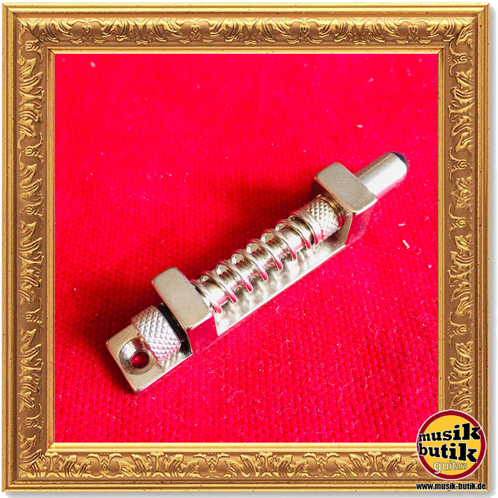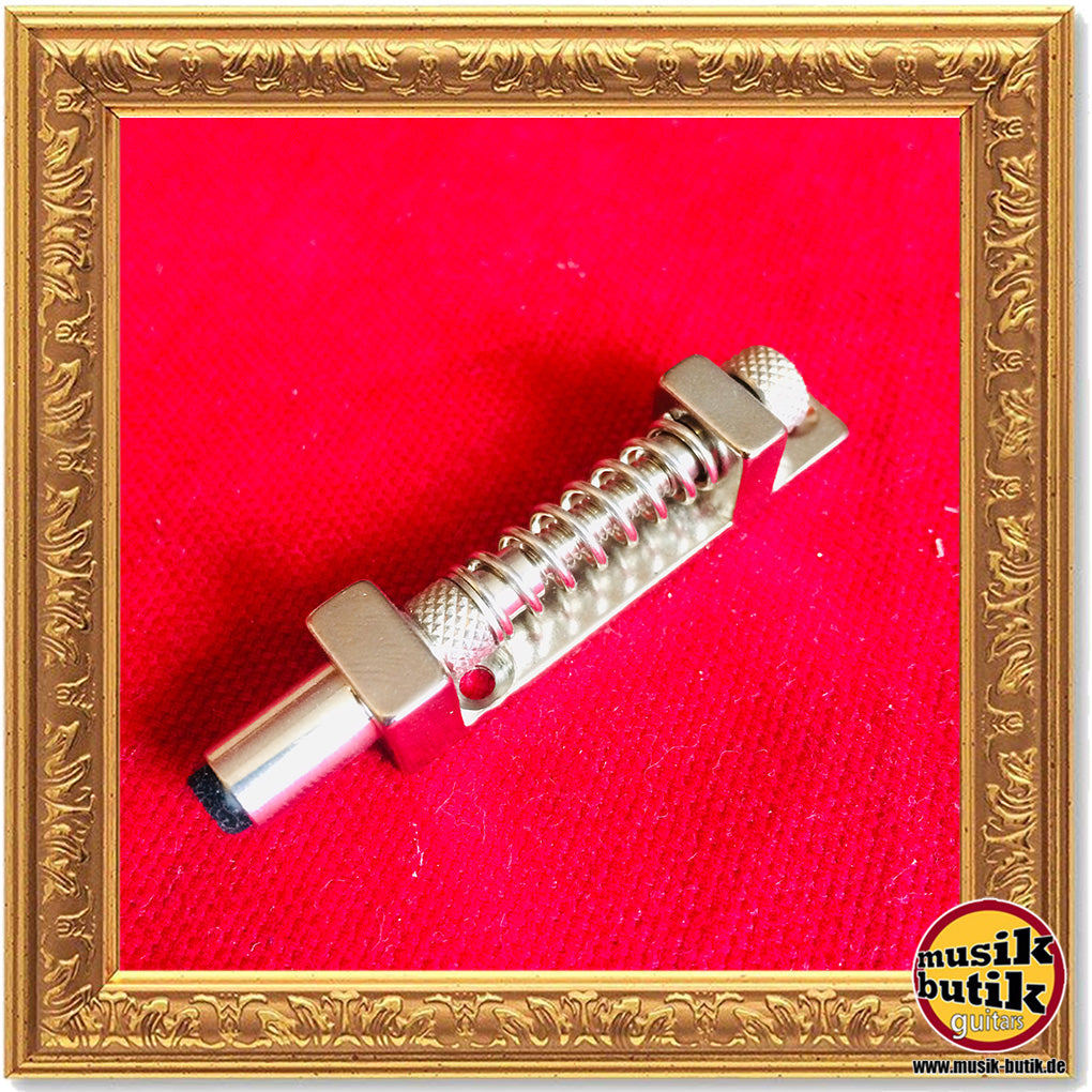 Die unsichtbare, arretierbare Nullstellung für jedes Federkammer-Tremolo. Sehr gut für Floyd Rose! Ein kleiner Federmechanismus sorgt dafür, dass der Tremoloblock immer gegen einen Anschlag liegt, welcher jedoch wegdrückbar ist, so dass sowohl nach unten als auch nach oben tremoliert werden kann. Einfacher Einbau (2 Schräubchen) im Tremolofach zwischen 2 Federn.